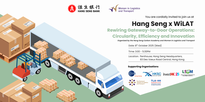 We are delighted to extend an invitation to you for the forthcoming forum titled: Hang Seng x WiLAT - Rewiring Gateway-to-Door Operations: Circularity, Efficiency and Innovation. This event is co-organised by the Hang Seng Carbon Academy and Women in Logistics and Transport, with our organisation serving as a supporting partner. We look forward to your participation in this insightful gathering.