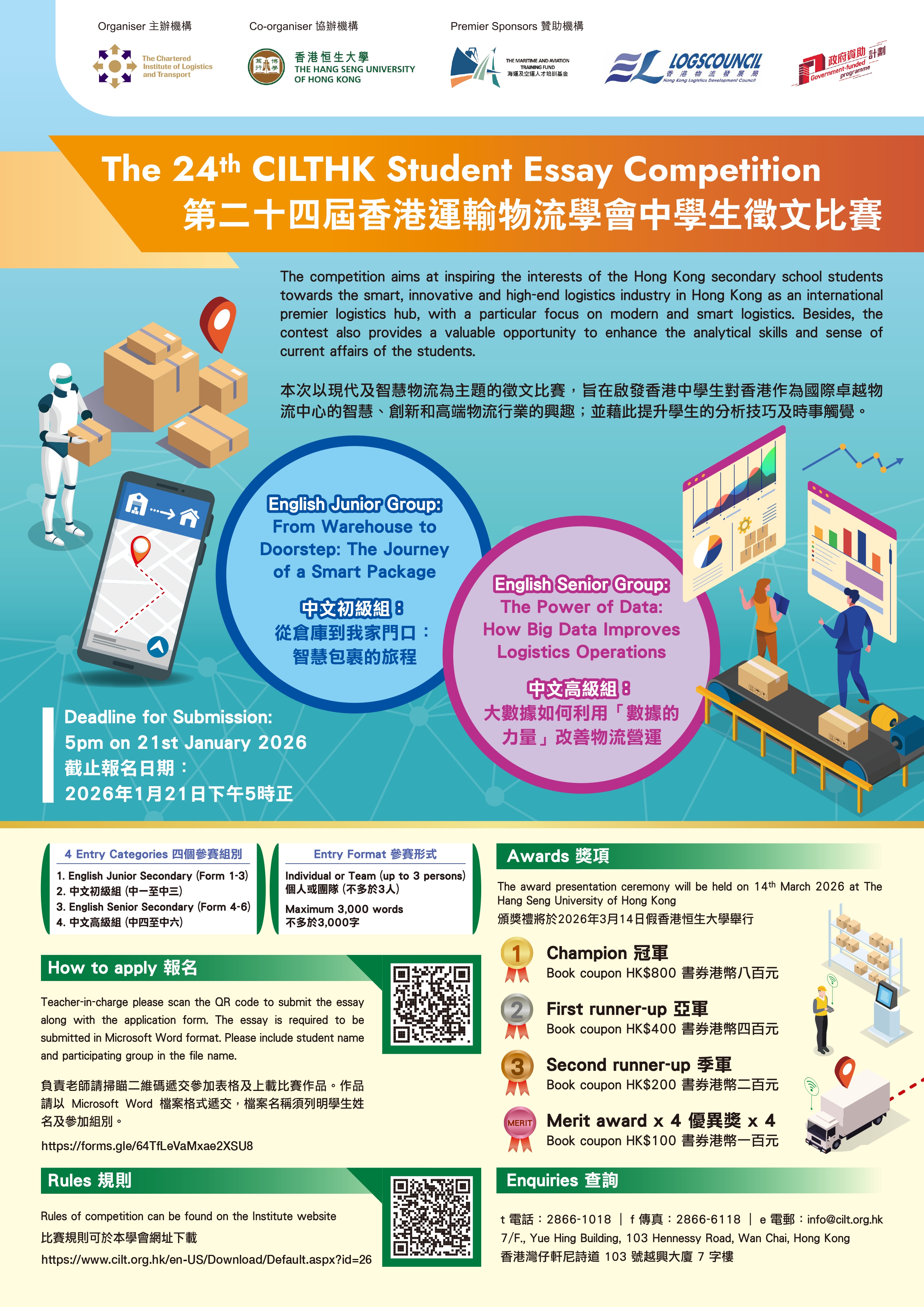 The 24th CILTHK Student Essay Competition 第二十四屆香港運輸物流學會中學生徵文比賽